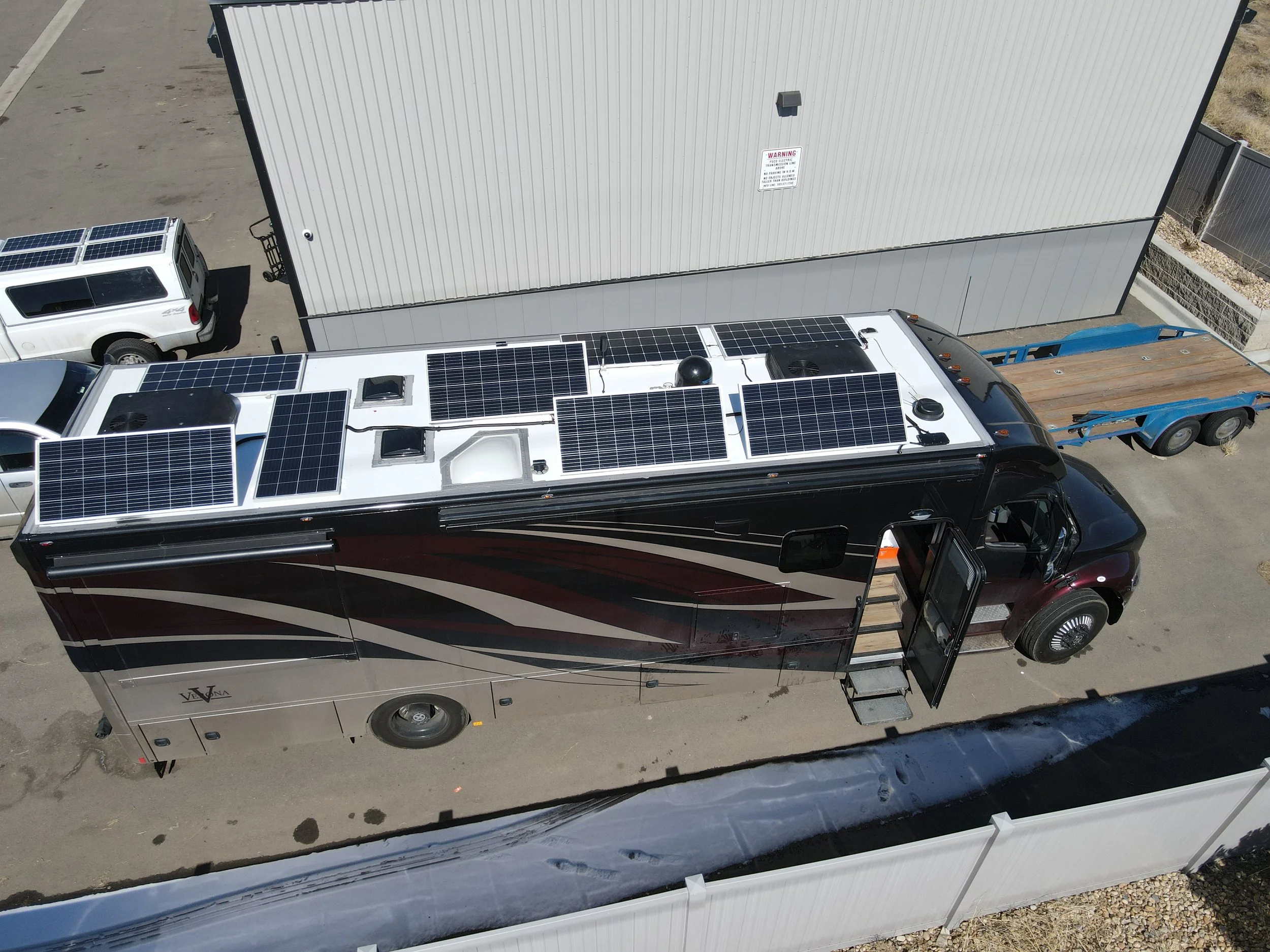 Class A Motorhome Solar Systems 2018 NewMar Baystar 600ah Battery Bank1600w Solar array 3000w Inverter Cerbo GX monitor System 1998 Coachman Santara 800ah Battery bank2300w Solar array3000w InverterCerbo GX monitor system 2002 National Dolphin 600ah Battery Bank1600w Solar array3000w InverterCerbo GX monitor system Renegade verona 1200ah battery bank1600w Solar array3000w inverter 2015 tiffan Allegro 40’ bus 1100w of solarVictron MPPT Bluetooth solar controller 2014 Tiffan ALlegro Red 34’ 400ah Lifeblue Lithium batteriesVictron Lithium Battery Isolator 2004 Monaco Executive 43ft 3000w Victron Inverter/Charger 2000w Solar Tell us your RV needs! see more installs > submit solar setup form >